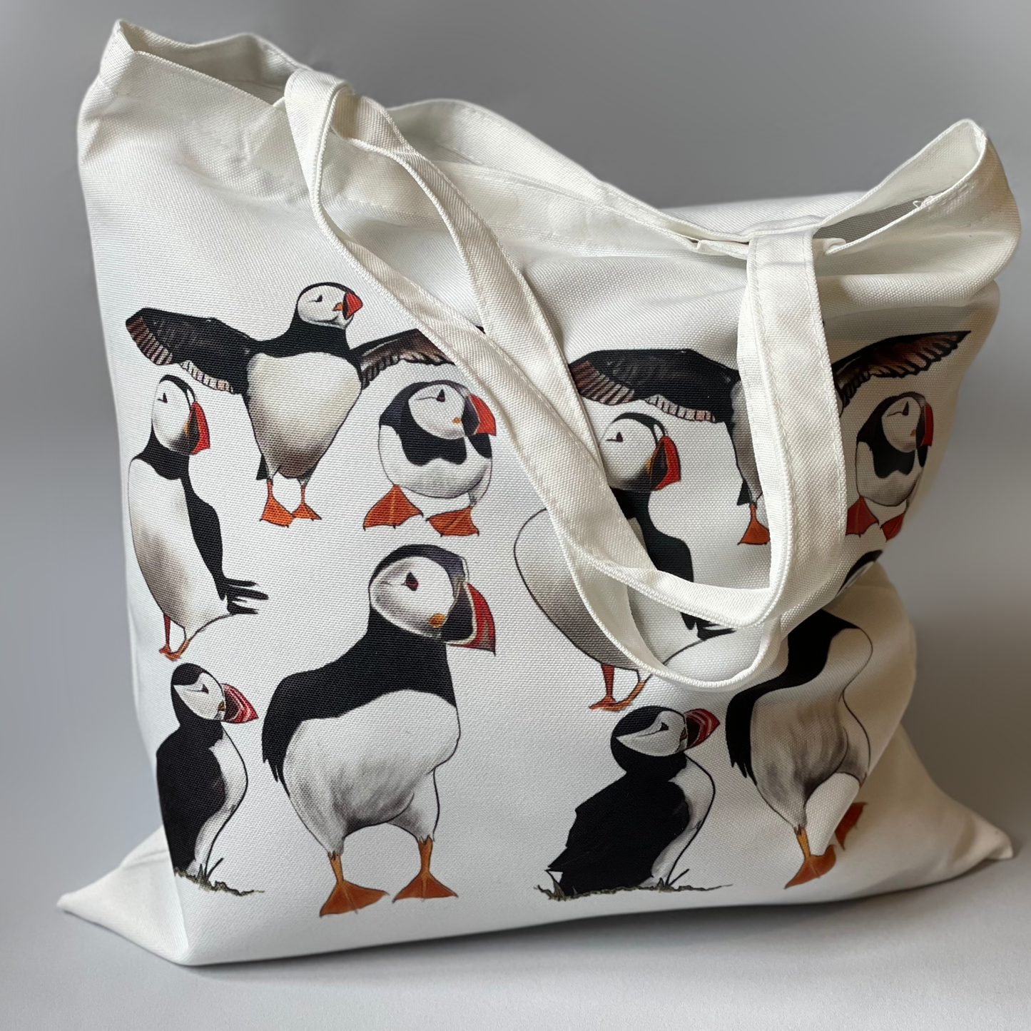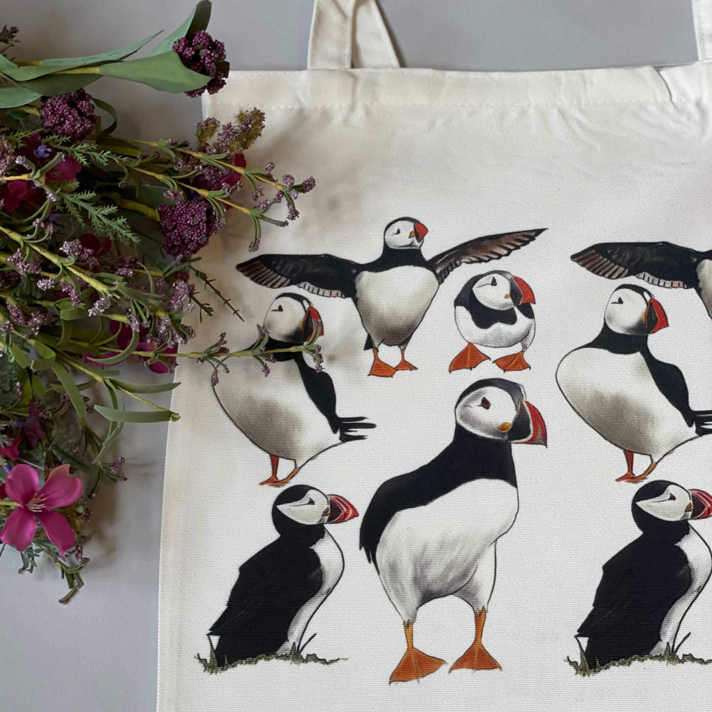 Puffins from Staffa - Digitally painted and printed to order in our little studio in Kilchoan in the Scottish Highlands, this is a beautiful gift for lovers of the sea, Ardnamurchan and puffins.