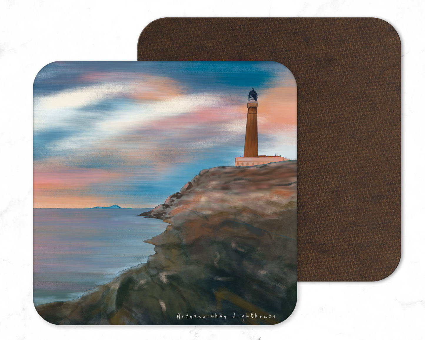 Sunset at the Lighthouse, the most westerly point on the UK mainland. Digitally painted and printed to order in our little studio in the Scottish Highlands, this is a beautiful gift for lovers of the sea and Ardnamurchan. Matching mug available.